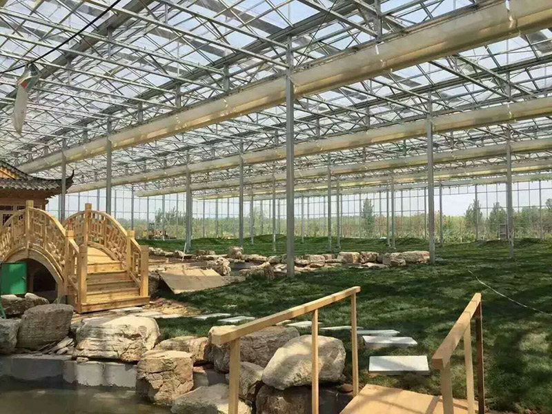 我們承建的生態餐廳,克服了種植溫室易結露,視野小的弊端,以大空間,舒適、環保為理念,設計開發了高屋脊、大跨度、大空間的用類型,覆蓋材料采用玻璃或PC板,外形造型美觀,恢弘大氣,內部視野開闊,寬敞明亮。置身與其中,既能感受田園的韻味,又能享受美味佳肴。