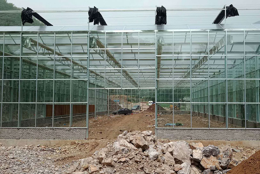 主體結(jié)構(gòu)采用熱鍍鋅管材,覆蓋材料采用陽光板、普通或中空玻璃,采用溫室用鋁合金型材鑲嵌,邊緣與鋁合金型材連接處采用乙丙橡膠條密封。